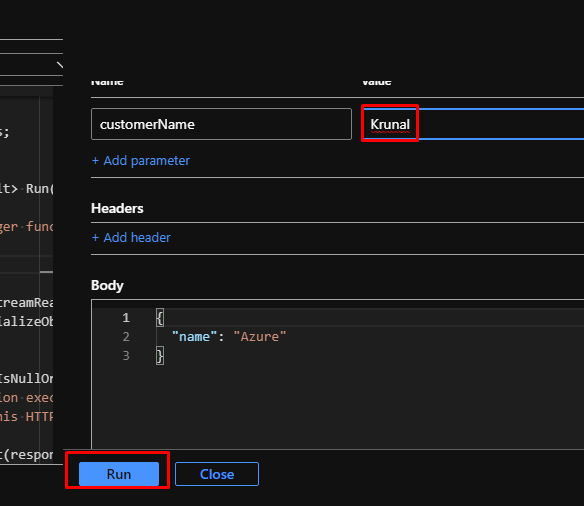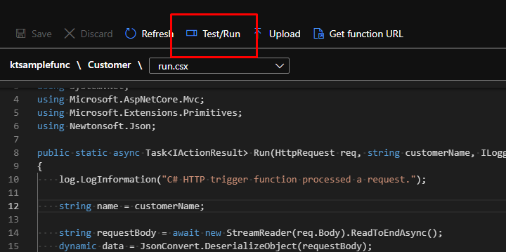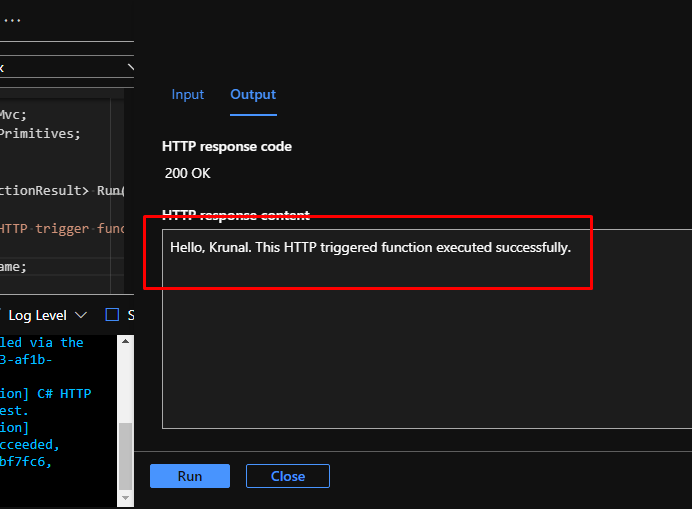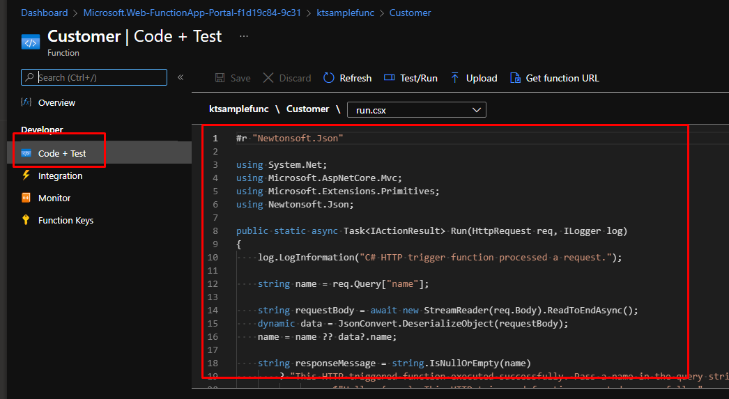 Here you will see the standard code template for HTTP trigger.