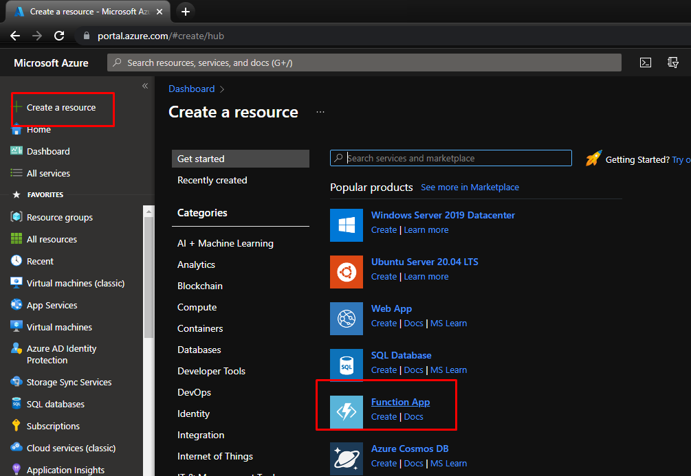 First of all, go to the Azure Portal and create a function app.