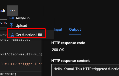 Now to test the API, click on the three dots and click Get Function URL.