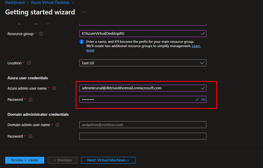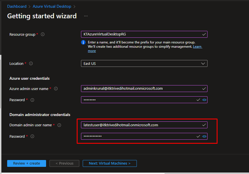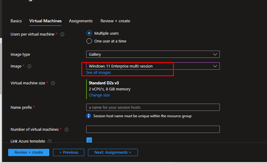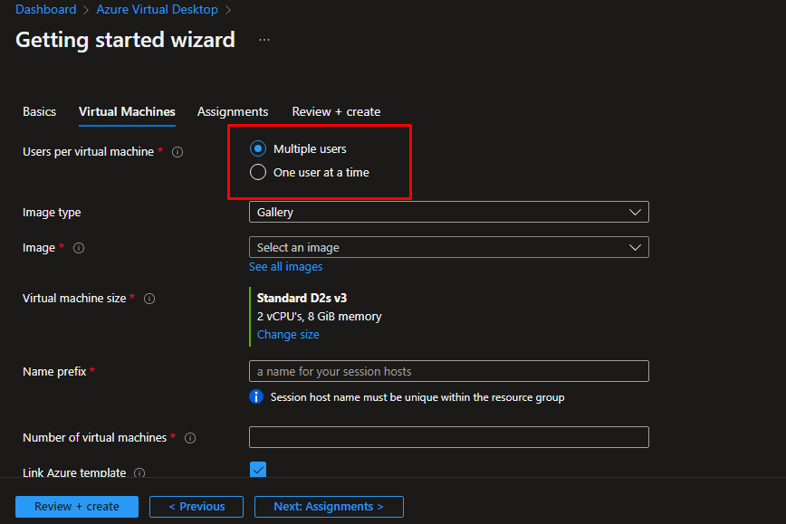 Next in the virtual machines blade, choose multiple users to access the VMs in the Virtual Desktop host pool. It is useful because it saves a lot of resources.