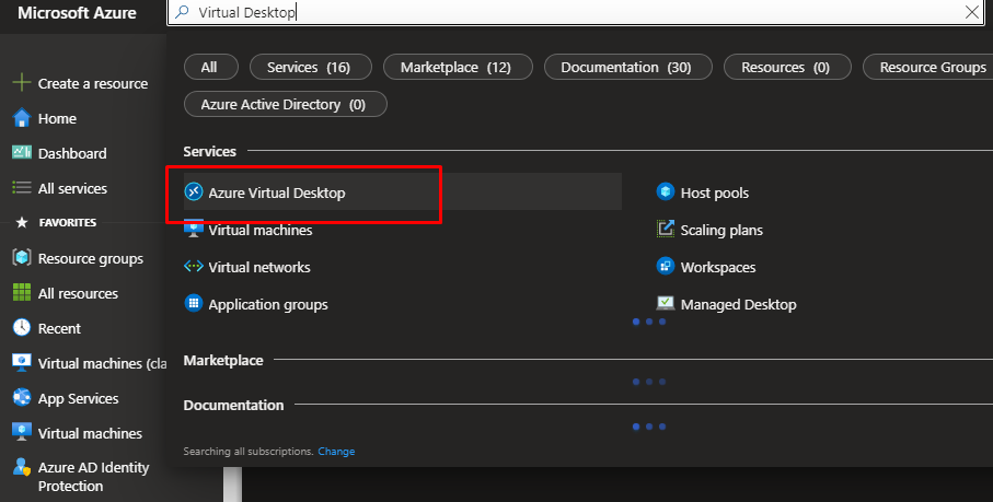Go to Azure Portal and search for Azure Virtual Desktop.