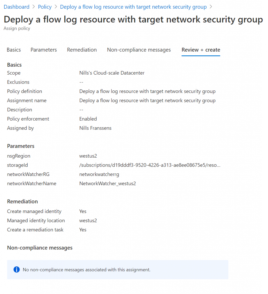 In this post, we explored how to automatically set up NSG flow logs using Azure Policy. We used the portal to do this for a single region, but as you can guess, this can easily be automated for multiple regions (and multiple services) using automation tools.
