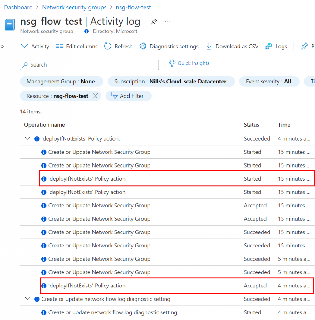 But anyway: that’s how you can automatically create NSG flow logs for newly created NSGs.