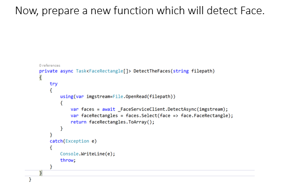 In this step-by-step tutorial how to use Face detection API of Microsoft Cognitive service with WPF Application.