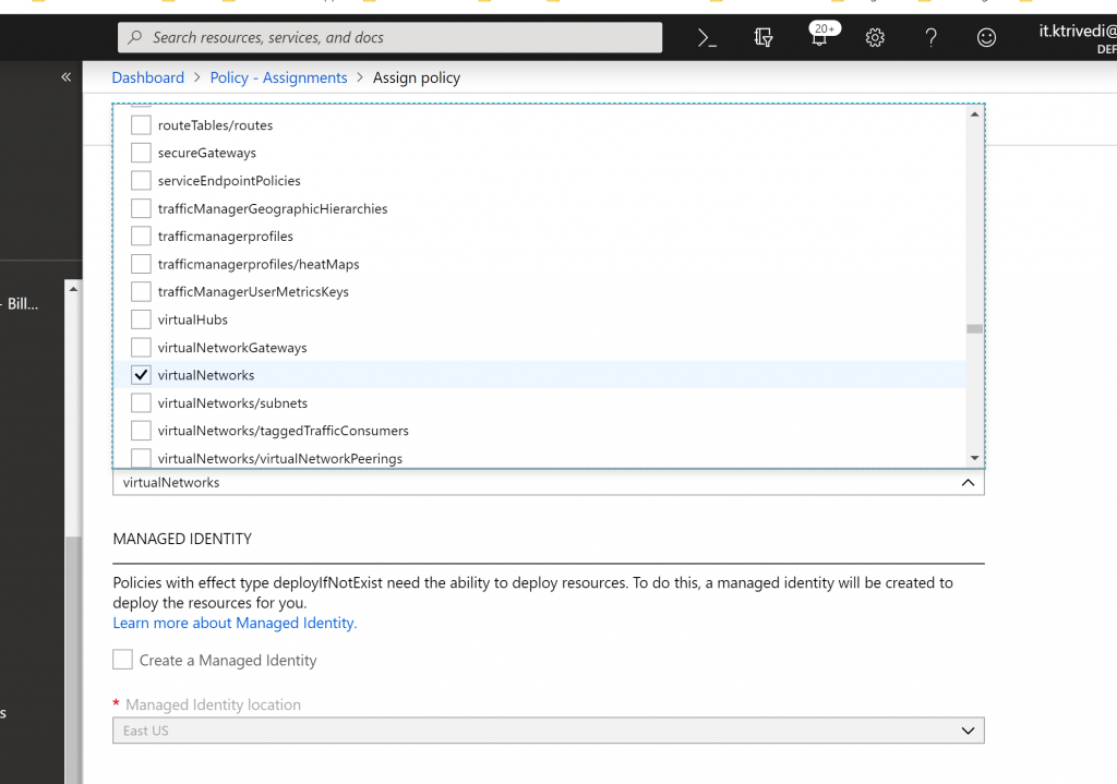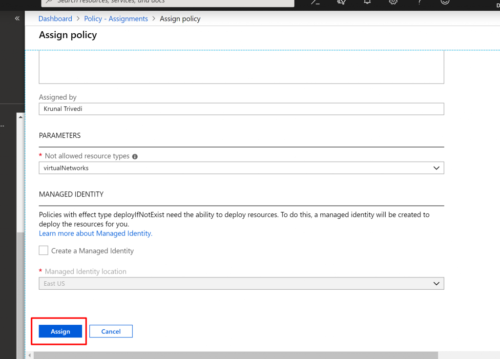 - Select the Resource Type we are not going to allow. We are not going to allow Virtual Networks. Click Assign.