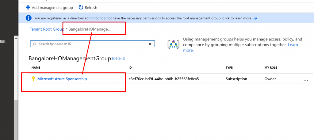 - Then you will see that the subscription would be moved inside the newly created Management Group.