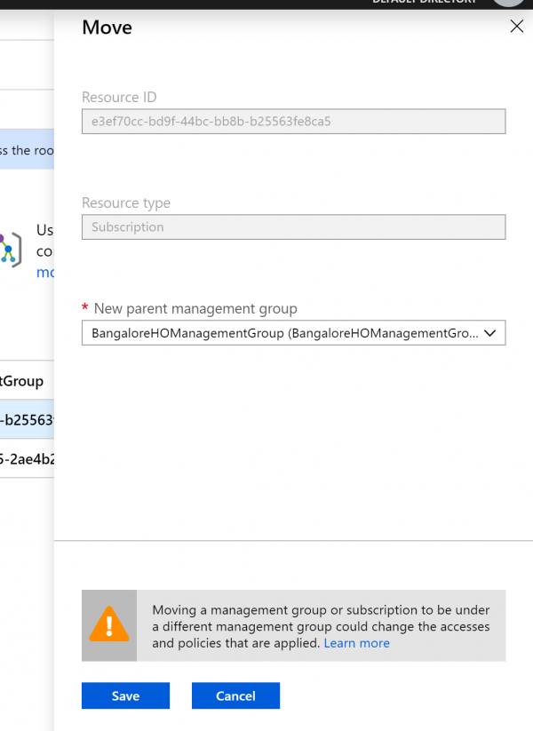 - Now on that pane, select the Management Group name you want to move your subscription to.