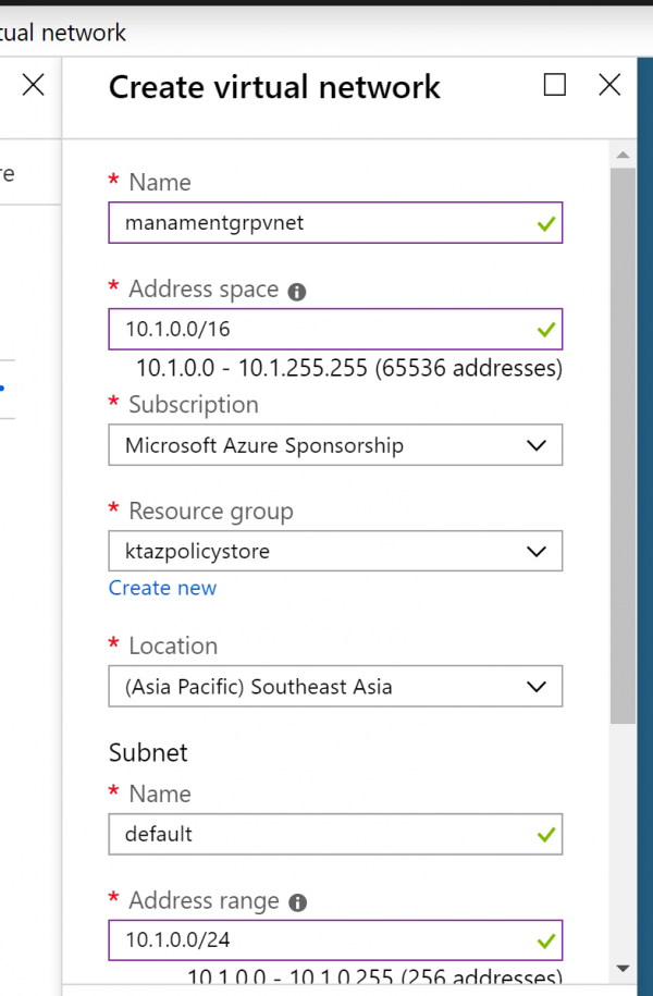 - Now let us check this out. Let us try and create a Virtual Network inside our subscription.