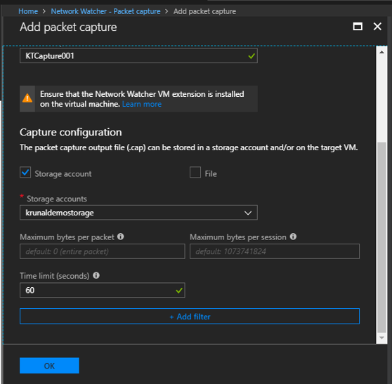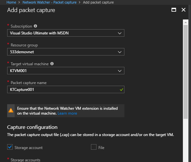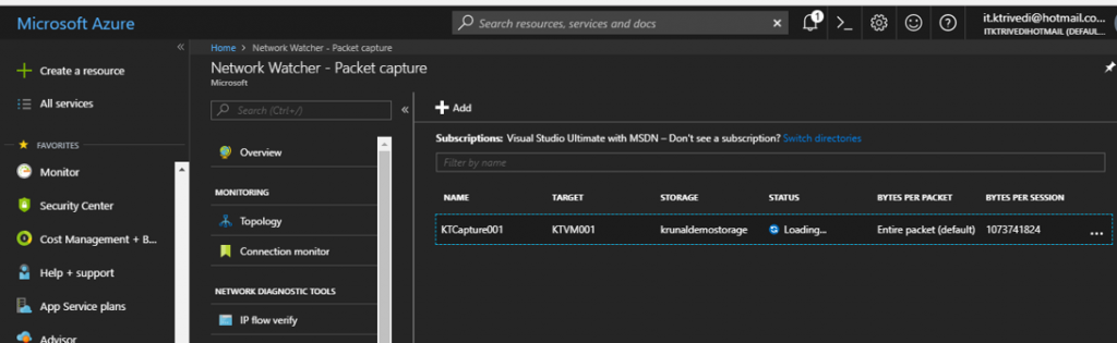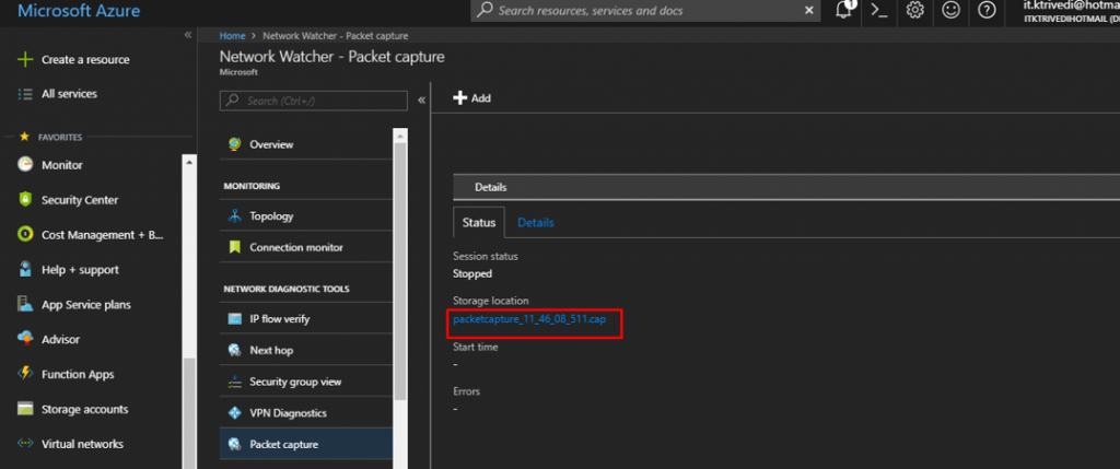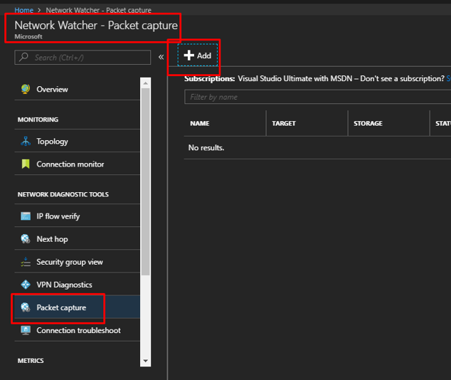 Next you can find Packet Capture in the Network Watcher. Click on Add to add new Packet Capture.
