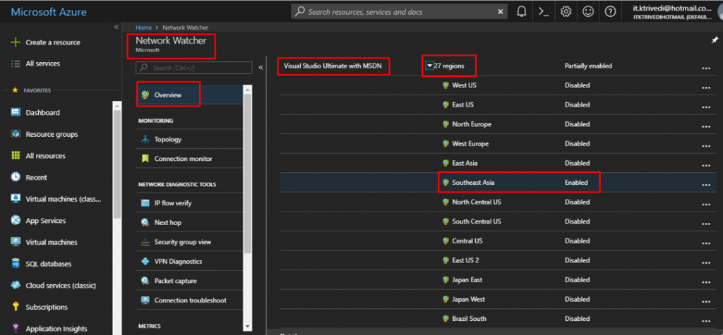 - This means that you have to enable the network watcher only in the regions where you have network resources running.