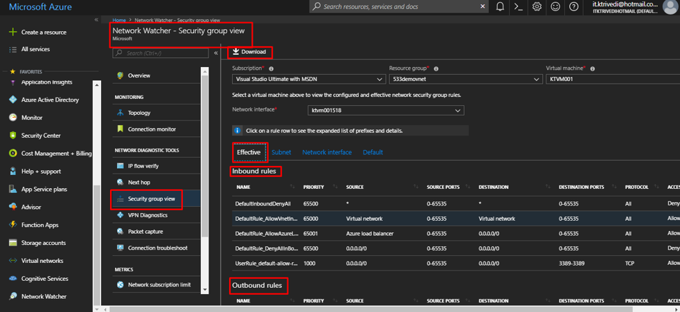- Security Group View and NSG Flow Logs help you to get detailed insights on Network Security Groups.