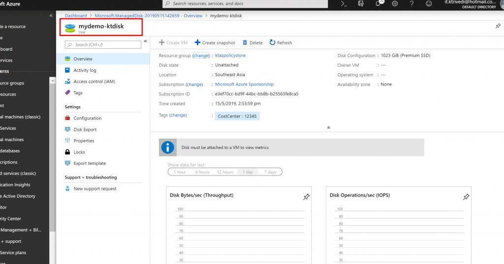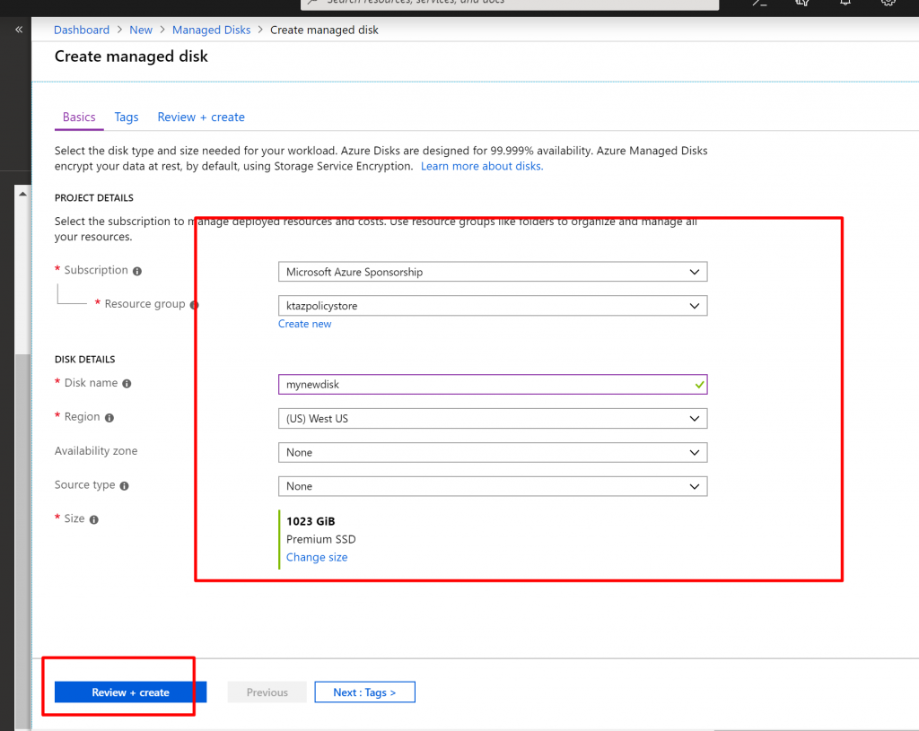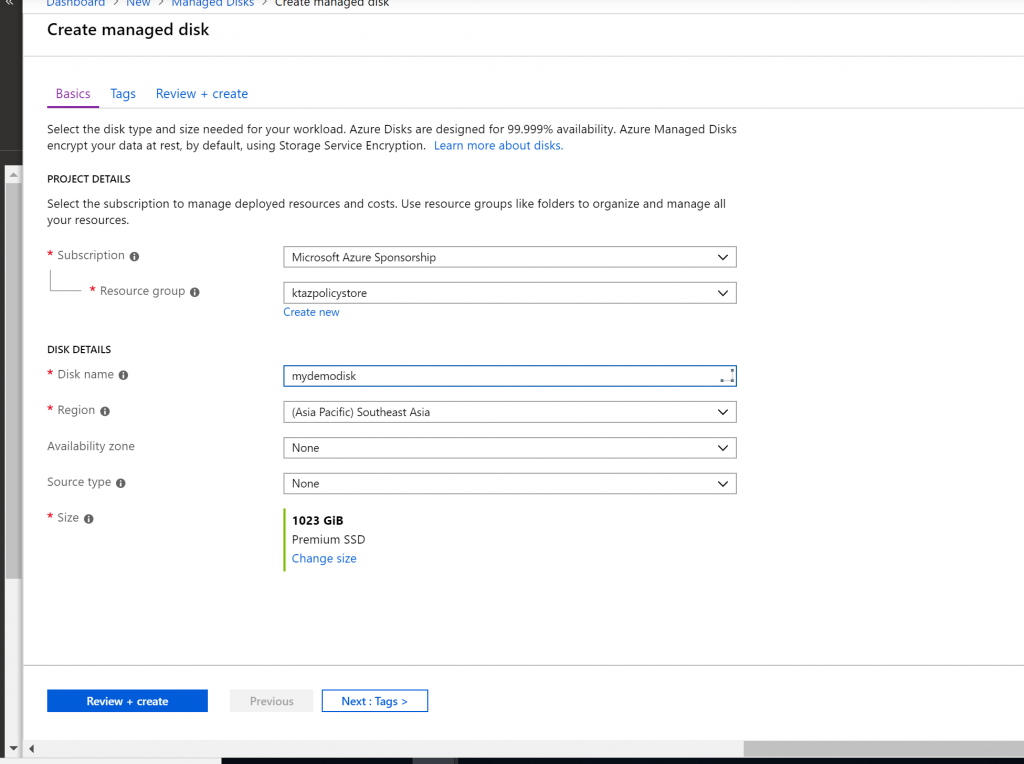 - Now let us test our polices. We have allowed disks in the subscription. So let us create a disk.