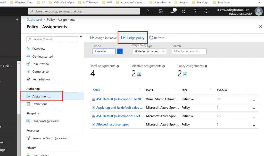 - Click on Assignments –> Assign Policy