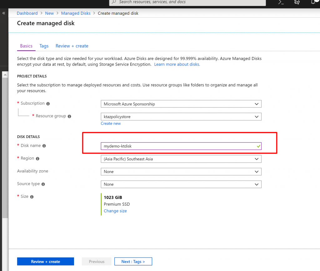 - Lets check it out. Let us try to create a disk. I give some random name here.