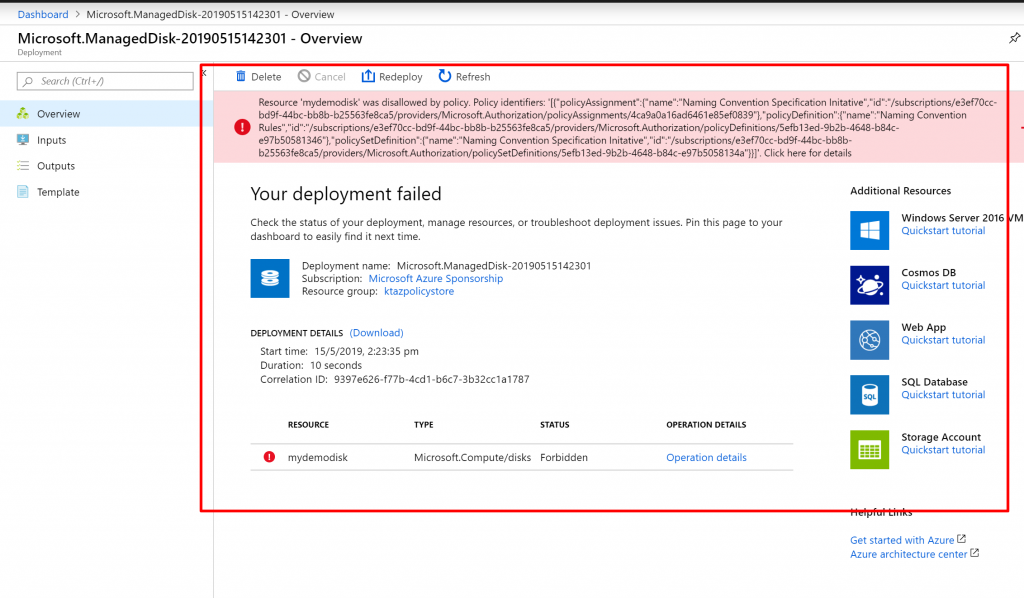 - You can see this time the resource is deployed successfully.