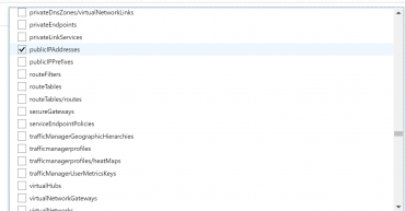 - Now we have to select which Resource types we want to allow. Click on the drop-down list. It is a long list of items, so it takes few moments to populate. Here we are going to select disks,virtual machines, network interfaces, network security groups, public IP addresses, express routes, virtual network.