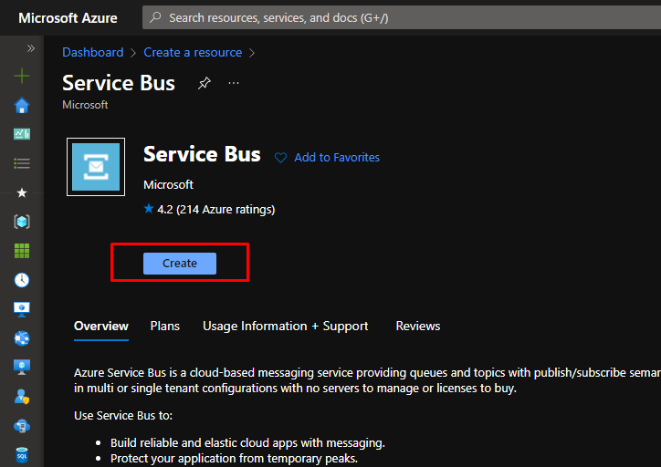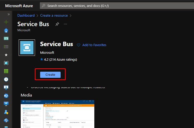 In the Azure Portal, search for Azure Service Bus. Creating this will create a new namespace in the service bus.