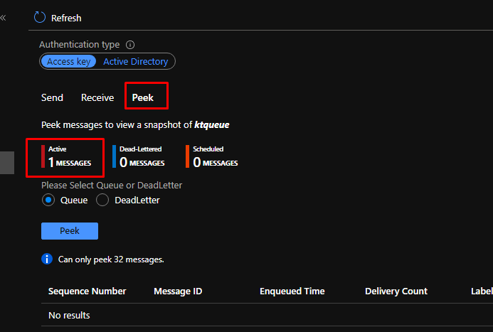 You can also peek the message. Note that peeking the message wouldn’t delete the message. Next, let us receive the message.