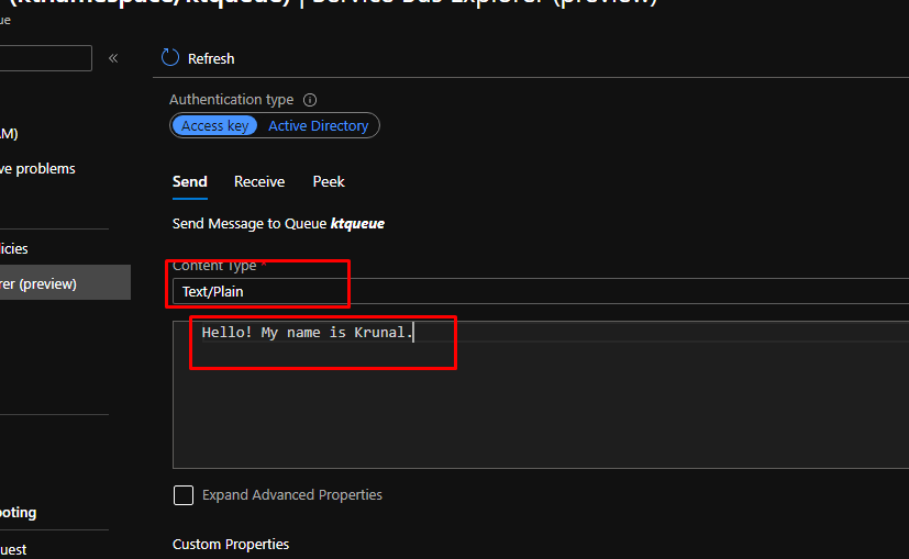 Once the queue gets created, to test the queue, go to the Service Bus Explorer.