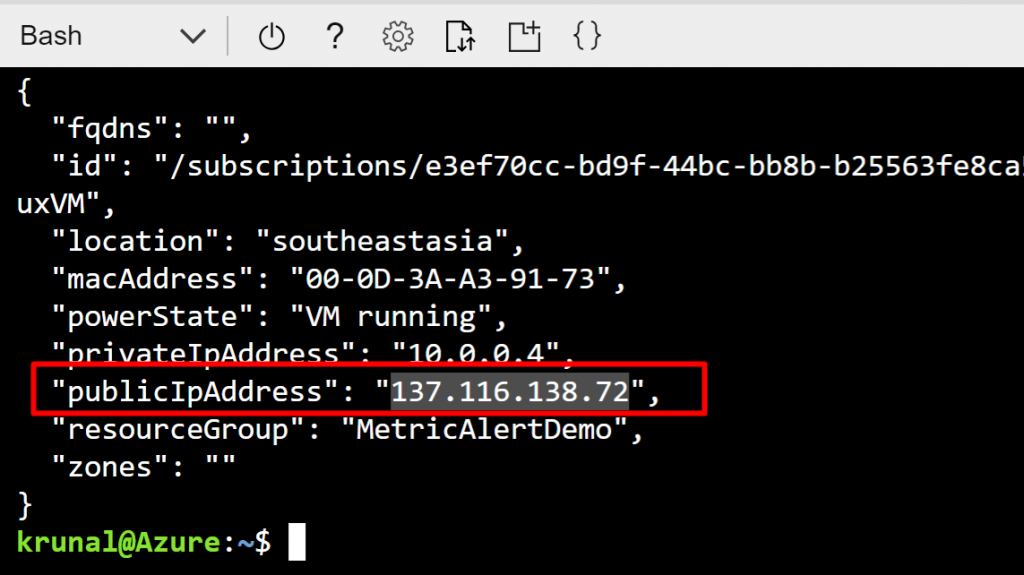Step 5) Note down the Public IP Address of the VM that gets created.