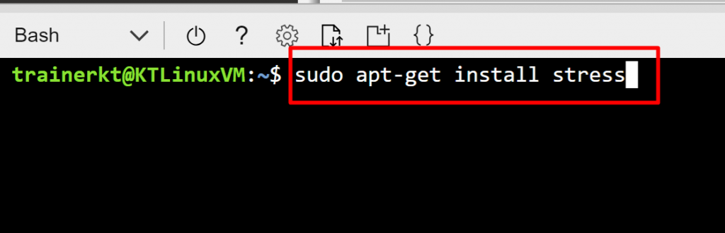 Step 17) Run the following command. The APT packet handling utility apt-get is used here to install stress, which is a tool used to stress test a Linux computer.
