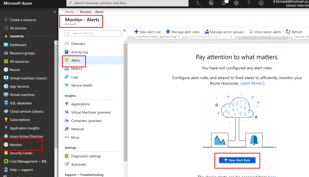 Step 7) Now, go to the Monitor tab and go to Alerts. Click on New Alert Rule to create a new alert rule.