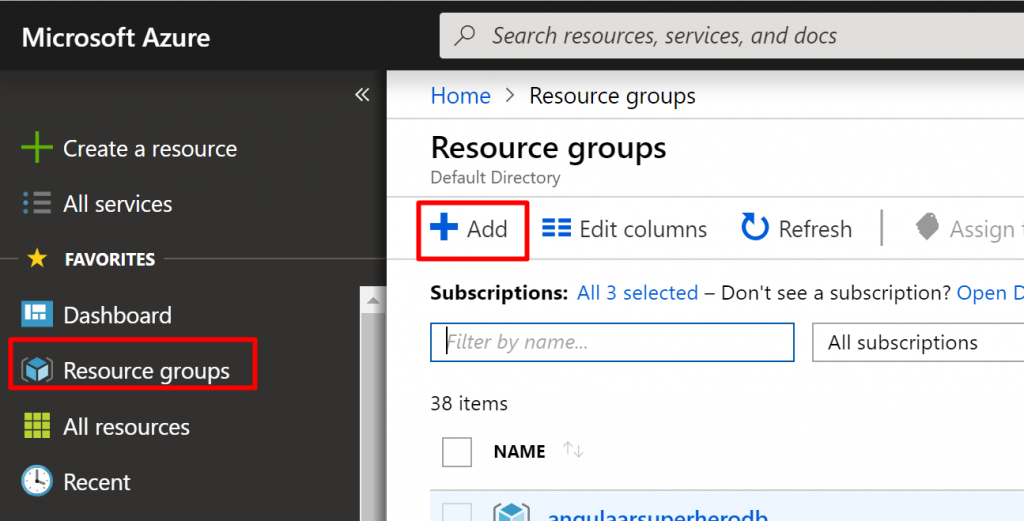 Step 1) Login to the Azure Portal. Go to Resource Groups and click on Add to add a new resource group.