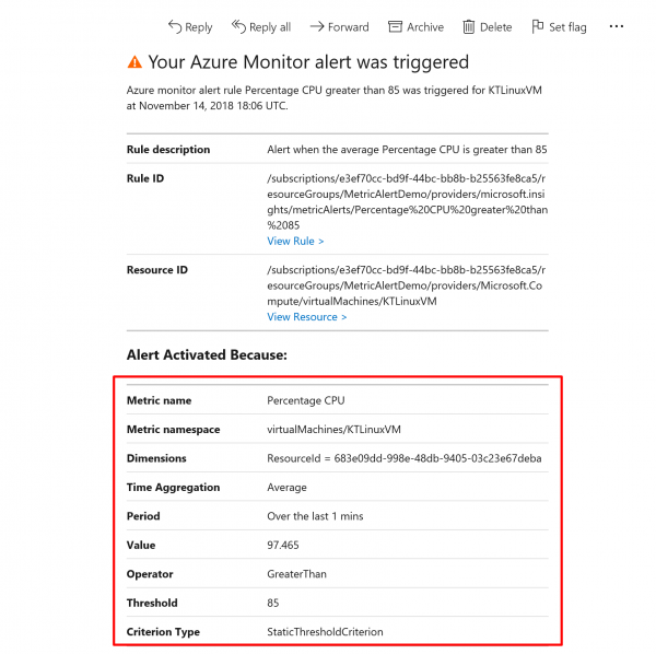 Step 21) The email would be something like this stating that the Monitor Alert was triggered with all the important information.