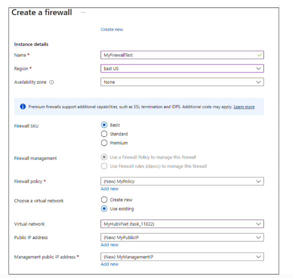 In the Basics tab of the Create a Firewall page, include the following details.