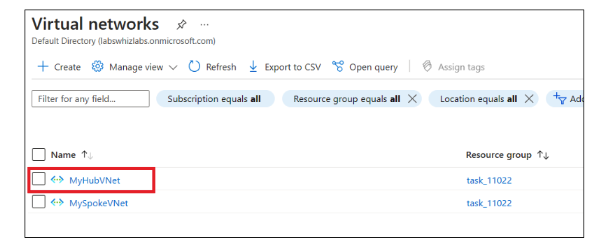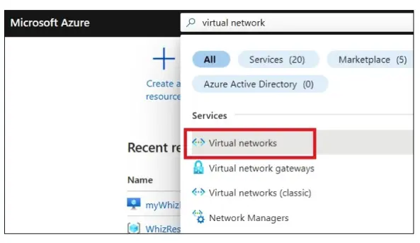 In the Azure portal, at the top, use the search box and enter Virtual network. Select Virtual Networks in the search results.