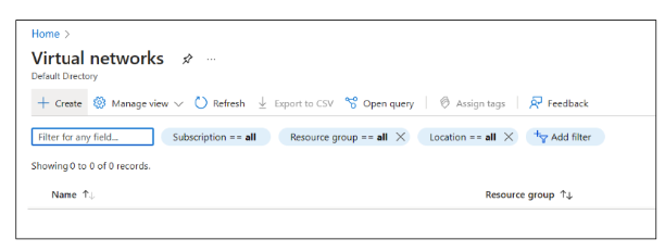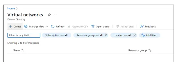 Click on "+Create" in the Virtual Networks section.