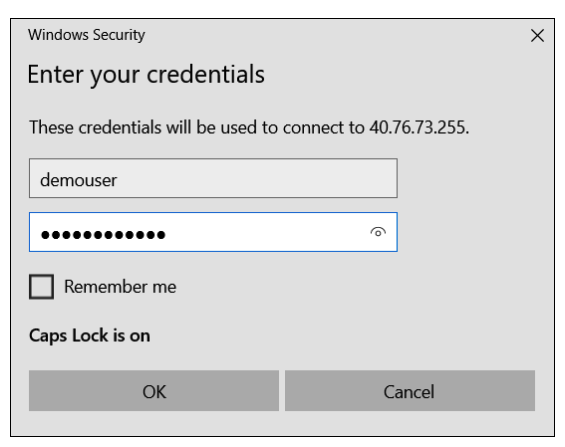 On your local computer, use Remote Desktop Connection and enter the public IP address to connect to your virtual machine.