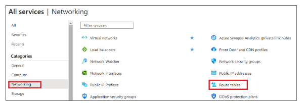 In the Azure portal, go to All services, and under Networking, select Route tables.