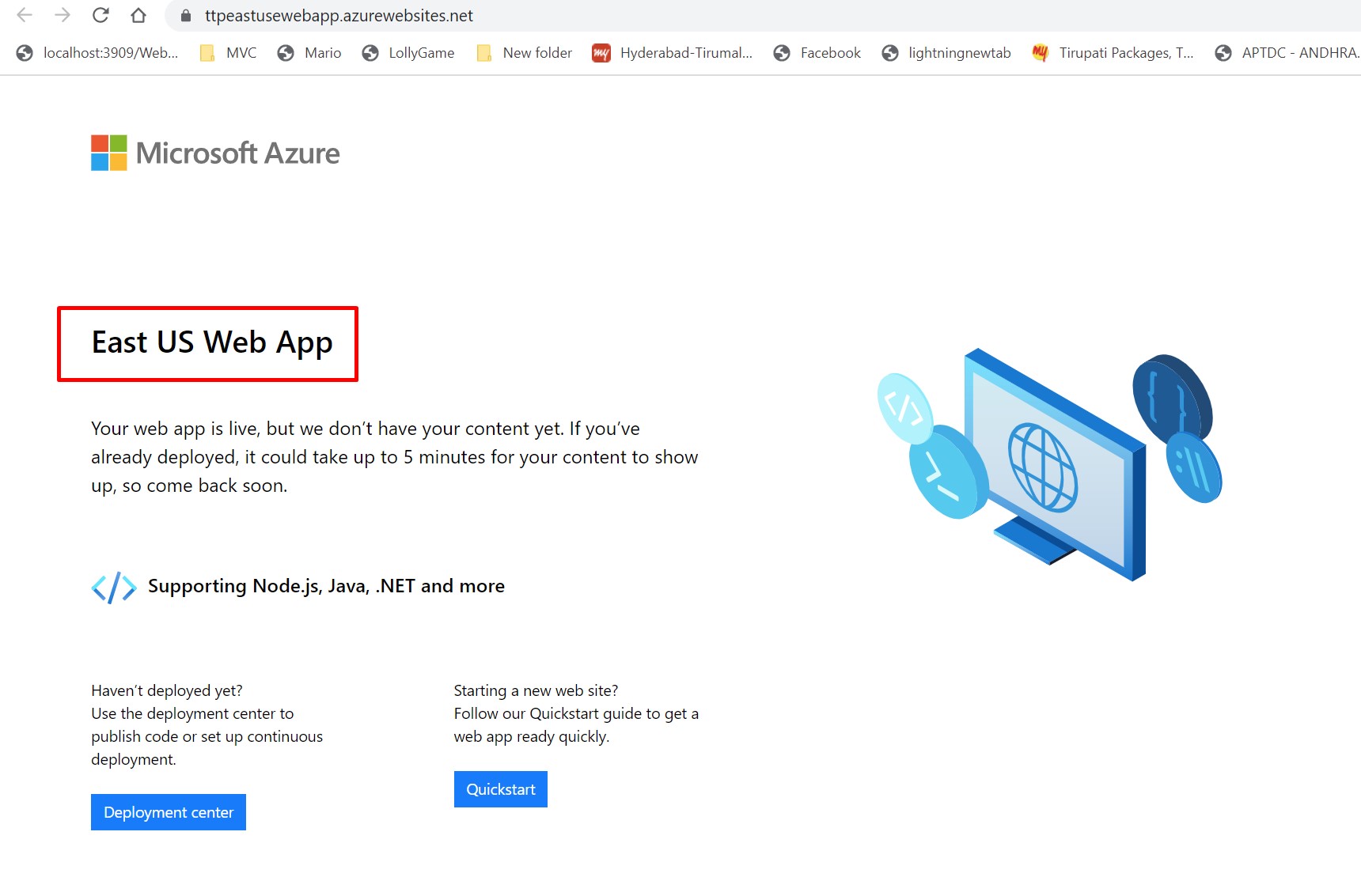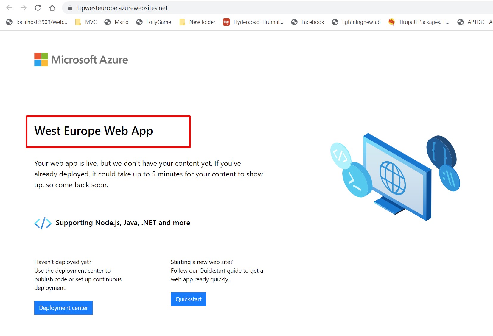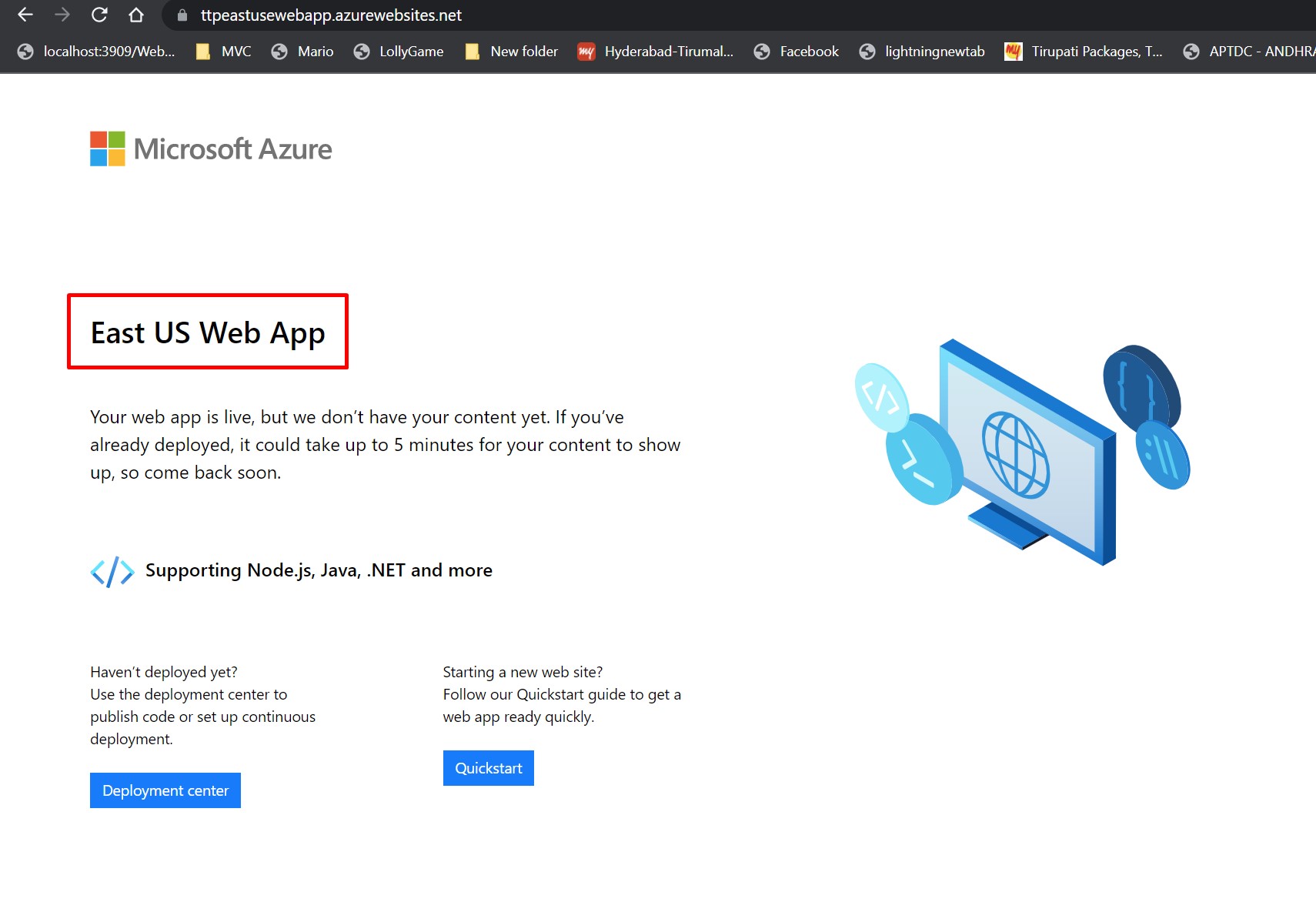 From the, Azure Portal stop the West Europe, App service. Here, I am redirected to East US region.