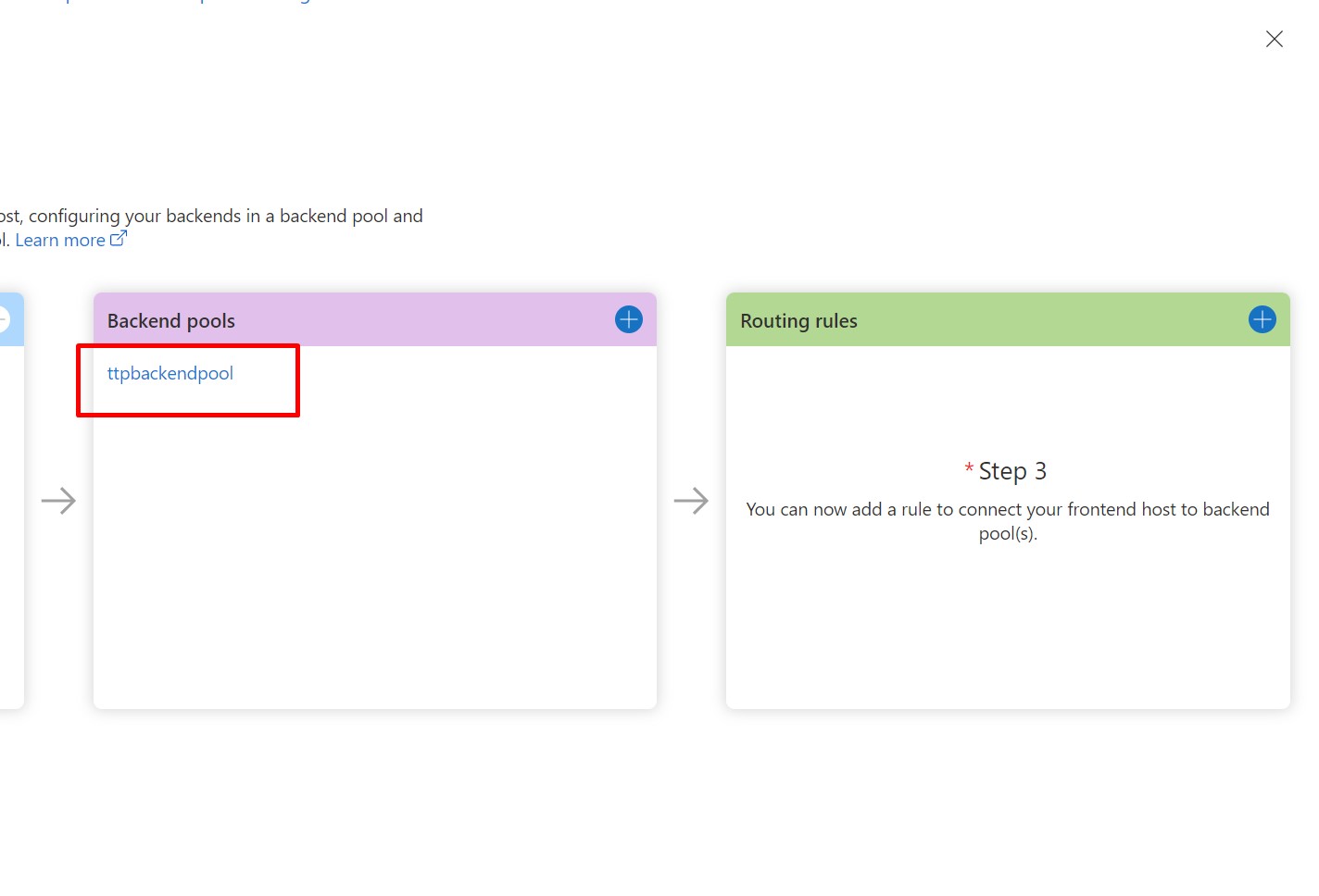 Now, select newly created backend pool. Here, you can see already provisioned Backend Host name is visible. Click on Add a Backend.
