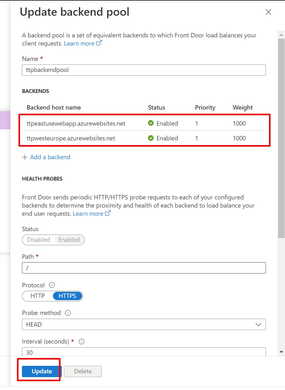 Once, both the backends are available, click on Update button.