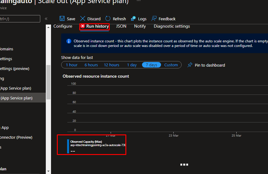 You will see that in the run history here. Right now my app has not scaled up because the users are not using the app right now.