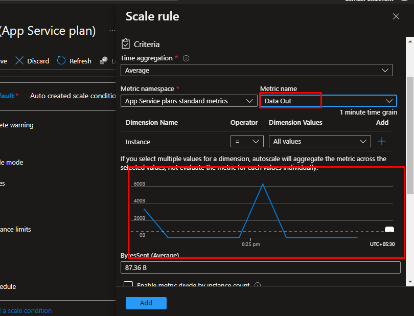 Let’s say for now we are choosing data out as the metric. You will see that it will show the data for the last few minutes.