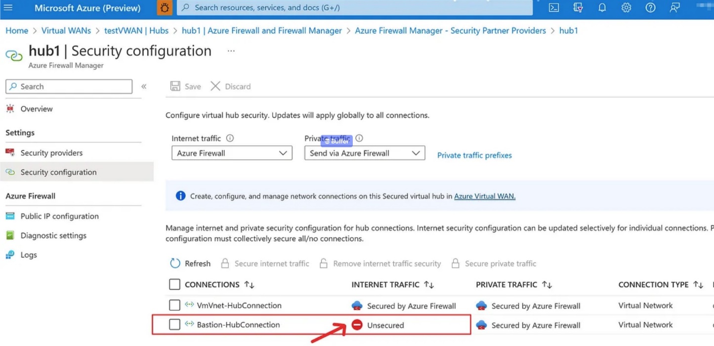 The IP-Based Connection feature, which allows you to connect to your on-premises, non-Azure, and Azure virtual machines using a private IP address and is supported by Secured Hub VWAN, is available in the Standard SKU.