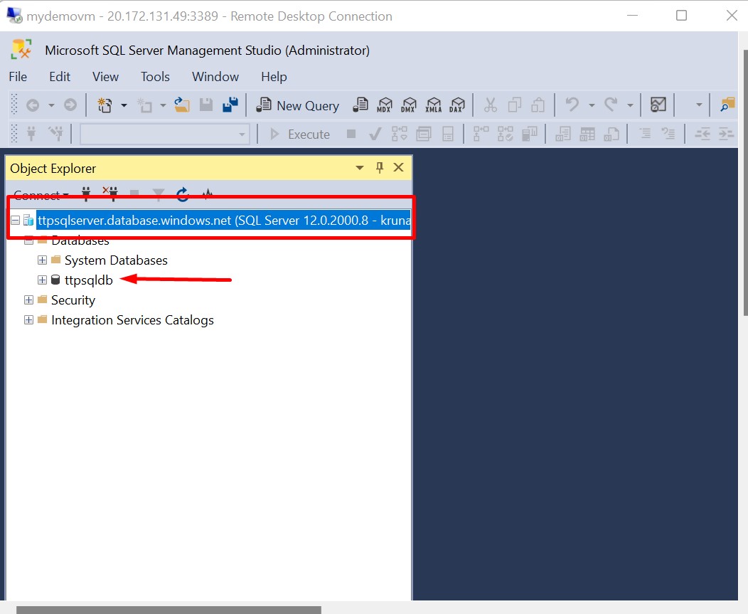 Now, Install SQL Server Management Studio, in your VM and try to connect to our SQL Database hosted in Azure DC. You'll notice that you don't have to add your IP address to the SQL Server firewall. The connection that you now have with the SQL Server and database is secure and travels over the Azure backbone, not over the public internet.
