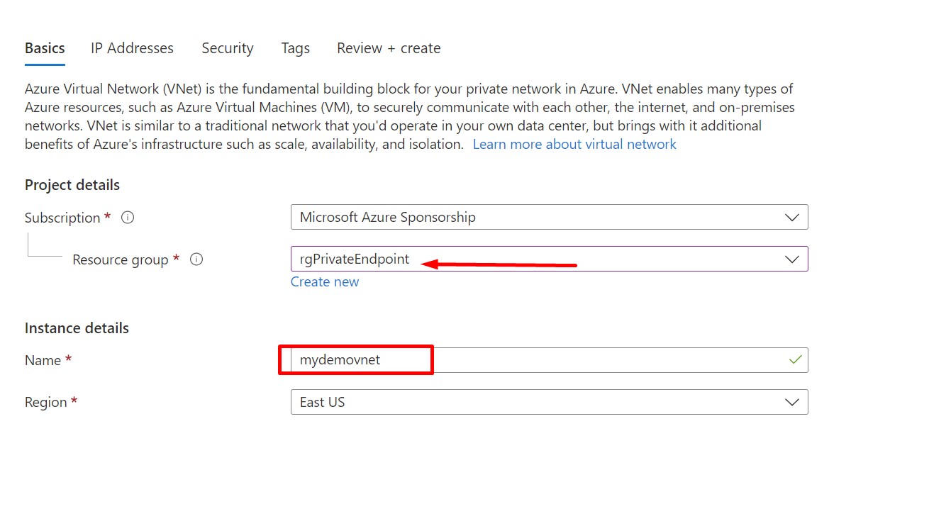 Now, Provision a new Virtual Network under the newly provisioned Resource Group.