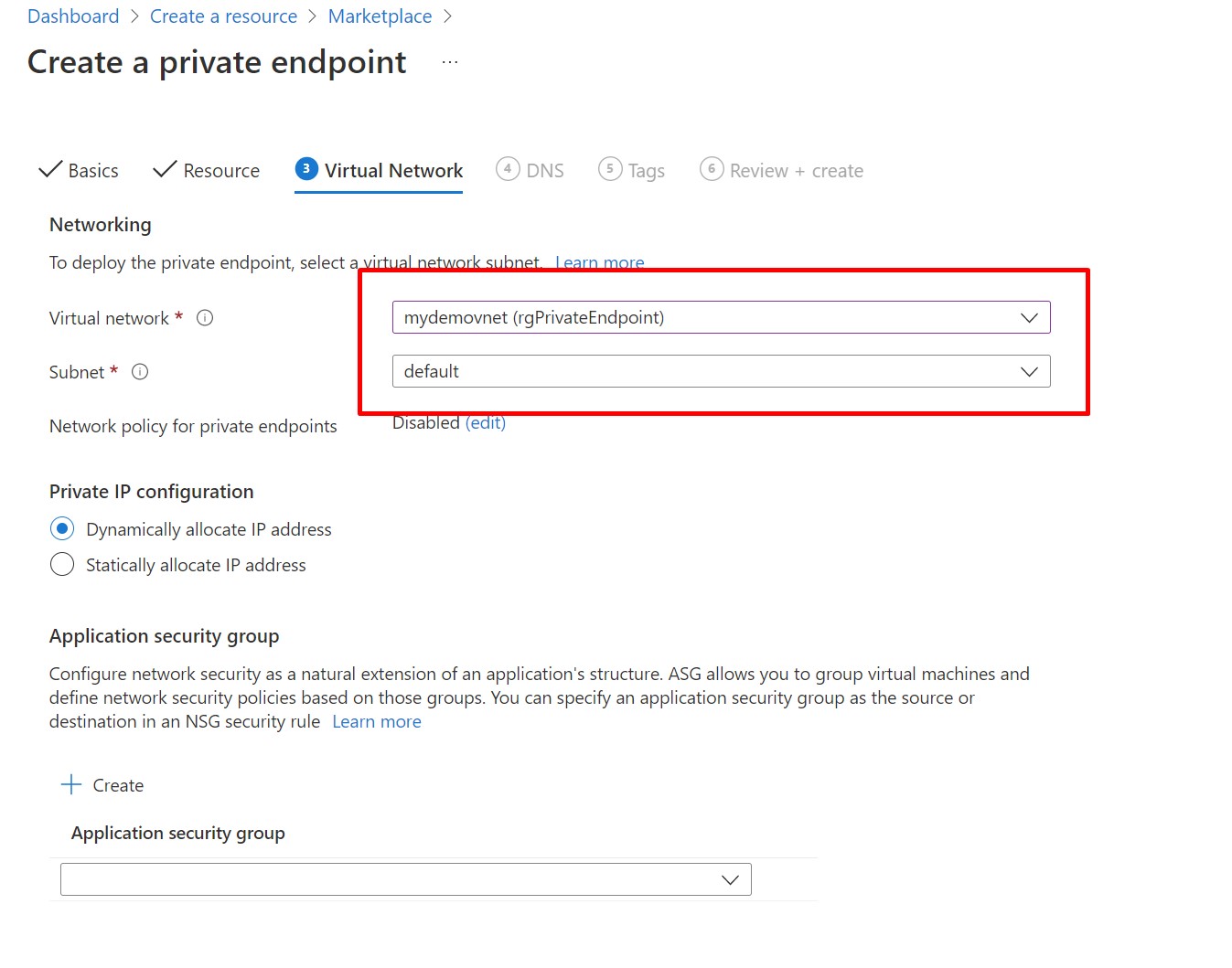 Here, on the Virtual Network tab, select the VNet and Subnet which we have already provided.