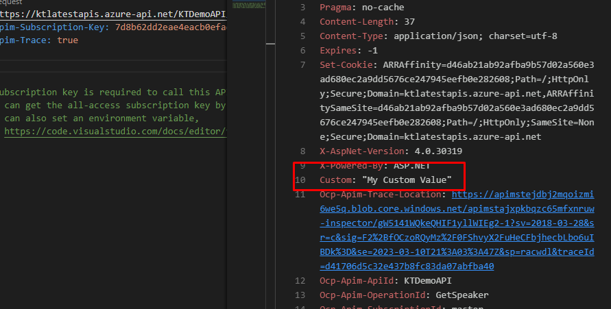 Go to policy and add a custom HTTP header to the API response. Save it and upload it to the cloud.