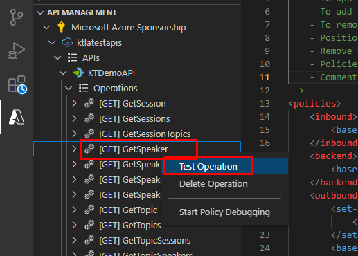 Now time to test it. Right click on any of the GET operation and click Test Operation.