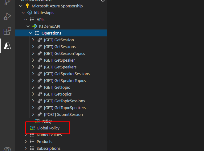 Once the API gets imported, you will be able to see the operations and the policies that fall under the API.