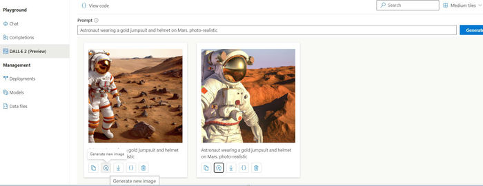 For example, input provided by the user describes Astronaut wearing a gold jumpsuit and helmet on Mars.Photo-realistic.