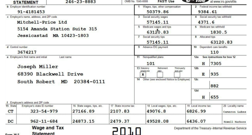 Here's an example of a W-2, which we'll use as input for the solution: